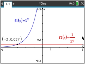 Enter the left side into f1 and the right side into f2.   Keep in mind that 1/27 is a very small value.