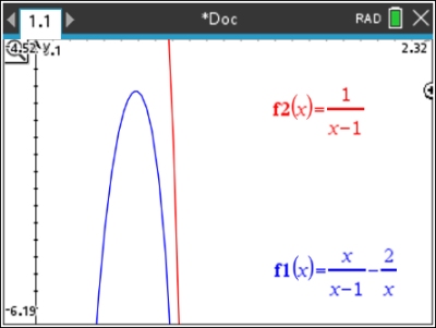 Hint:  When working with rational equations, it may be difficult to "see" the intersection point if the viewing window is a small representation of the graph.