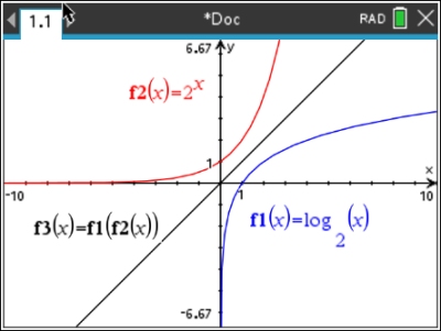 that these functions are inverses of one another. Note: after graphing the composition, you can double check that the identity line was created by graphing f4(x) = x. Using