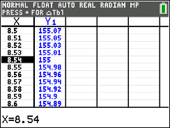 Go to TBLSET (above WINDOW) and set the TblStart to 42 (since 42 minutes gives a temperature close to 106º in our chart).  Set the delta Tbl to a decimal setting of your choice.