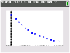 To see the scatter plot press ZOOM and #9 ZOOMSTAT, Hitting TRACE and right arrow will move along the data points.