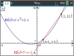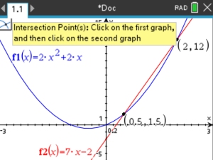 equation, solve using the intersect command to find the points where the two