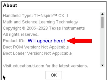 Note: The top portion of this "Handheld Status" screen will show the calculator's current