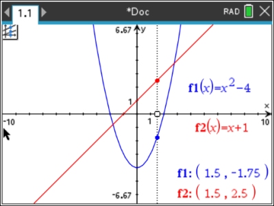 Values such as y-intercept, x-intercept, zero, maximum and minimum of the graph will automatically appear when encountered by the "spider".