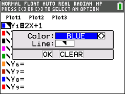 • From the graph entry screen, arrow left until a box is formed around the color and the line choice to the left of Y1.