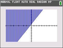 • Again, you must determine whether to draw a solid or dotted line as the calculator (using this method) does not show dotted (or dashed) lines.  This problem needs a dotted line because it is strictly "less than" (no "equal to").